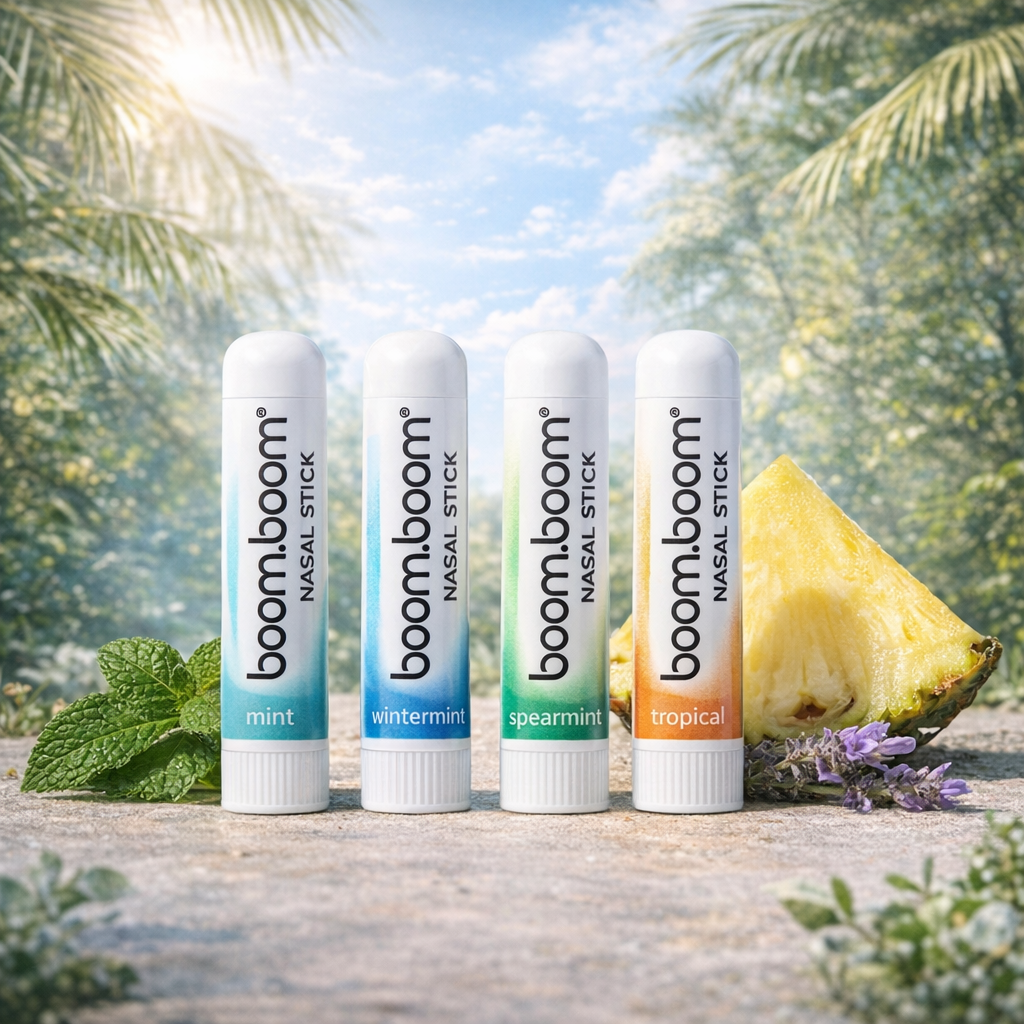 Nasal Stick som BoomBoom är annorlunda. Ditt luktsinne är mycket kraftfullt och spelar en viktig roll i hur du känner dig. Så när du sprayar din näshåla med smakrika mentol-, pepparmynta- och eukalyptusoljor med bärsmak, kommer du att uppleva en unik dynamisk och mental energi, inte en kemisk energi.
